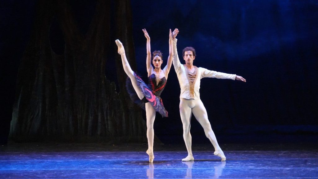 En la primera parte los bailarines Ana Elisa Mena (Odile) y Roberto Rodríguez ( Príncipe Sigfrido), lucieron el nivel técnico y artístico de la CND y con un vestuario de lujo dieron vida al clásico «Lago de los cisnes», basado en la obra original de Marius Petipa y música de Piotr Tchaikovsky. Sobresalientes fueron los diferentes solos que dieron pie a lo que sería un fabuloso espectáculo.