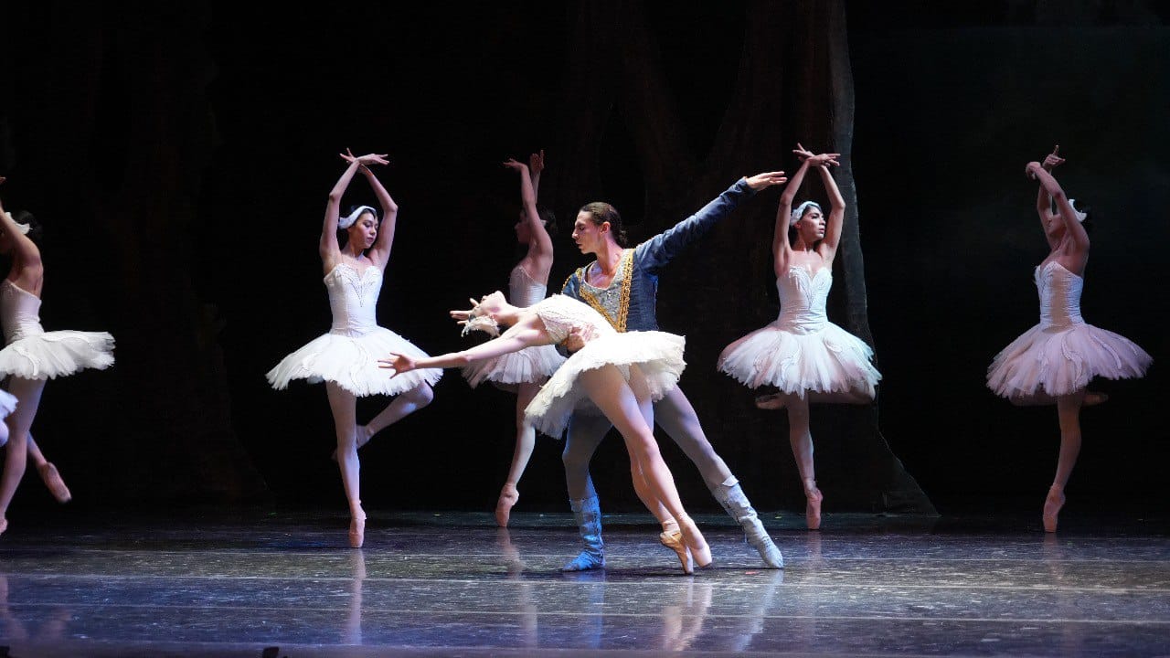 Antes de ir al intermedio, Valeria Mariaud interpretó a ‘Odette’ y Alejandro Hidalgo fue el Príncipe Sigfrido, acompañados de más de 20 bailarinas en el escenario, realizaron el segundo acto de la famosa obra, logrando transmitir pasión a través de rigurosos movimientos estéticos y un alto desempeño escénico y técnico, actuación que se ganó las palmas del público.