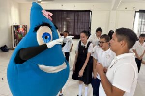 Mazatlán, Sinaloa.- En el marco de los 80 años de la creación del Día Mundial de la Alimentación, que de conmemora cada 16 de octubre, la comunidad escolar del Centro de Atención Múltiple CAM 50 recibió este lunes la visita de “Tita” y del personal de Cultura del Agua de JUMAPAM, para fomentar entre la niñez mazatleca los buenos hábitos en el cuidado del agua y del medio ambiente.