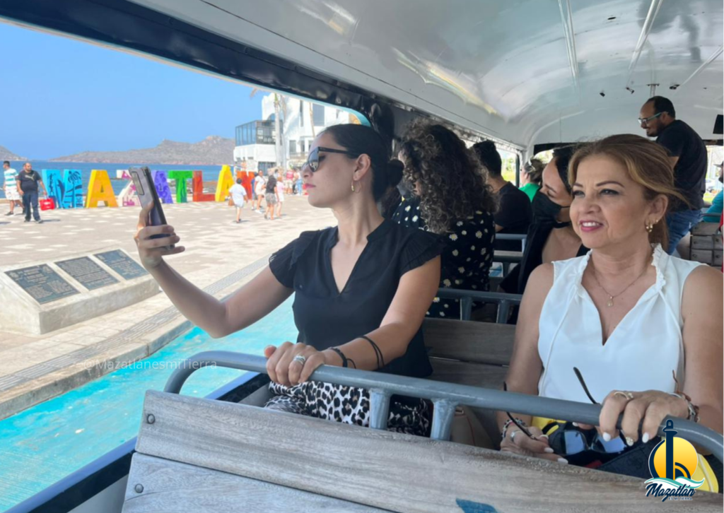 El paseo inicia y culmina frente a la Catedral de Mazatlán, en el que una audio guía te da la bienvenida, te cuenta la historia y datos relevantes del puerto, como que tiene una de las flotas camaroneras más grandes del Pacífico con más de 450 embarcaciones, las más de 250 especies marinas que se encuentran en el Acuario, el Monumento a la familia hecho por el reconocido pintor Antonio López Saénz o la construcción del Paseo del Centenario en 1910.