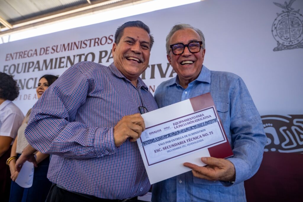 Culiacán, Sinaloa,..Al hacer entrega de equipamiento para la inclusión educativa en beneficio de 958 planteles de todo el estado, el gobernador Rubén Rocha Moya consideró que garantizar las condiciones óptimas para una educación de calidad permite la formación de buenos ciudadanos y productivos para la sociedad.