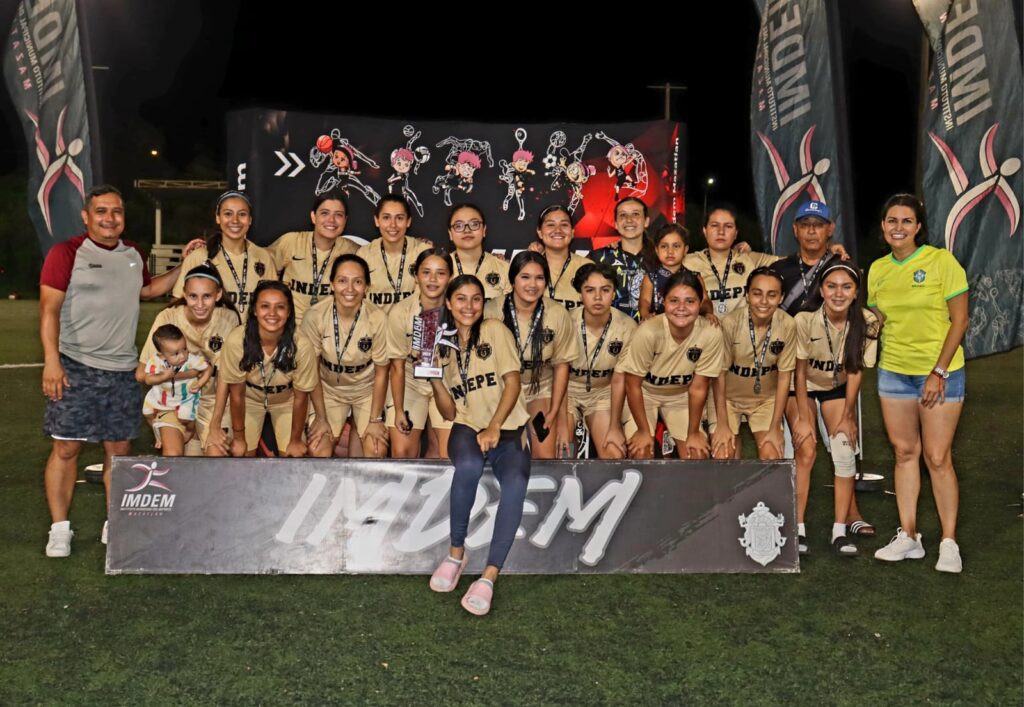 Mazatlán, Sinaloa.- El Instituto Municipal del Deporte Mazatlán participó en la final y ceremonia de premiación de la Liga de Fútbol Femenil Imdem, en la que el equipo Asefis se coronó en tanda de penaltis sobre Tigres Cremas, en el campo uno de la Unidad Deportiva Toledo Corro.
