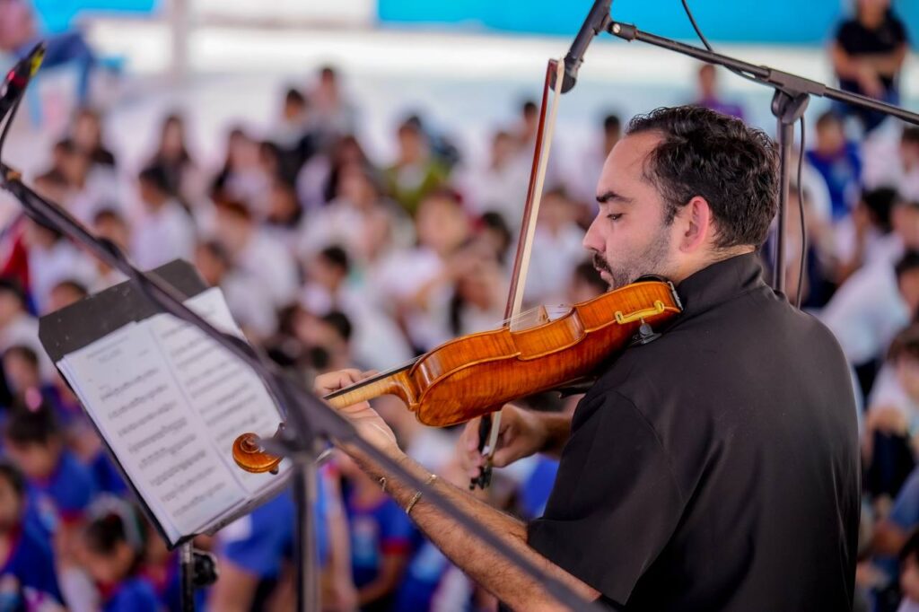 La presentación del programa Cultura en la Educación del Instituto Municipal de Cultura, Turismo y Arte de Mazatlán, incluyó un repertorio cuidadosamente seleccionado para despertar el interés infantil, entre los que destacaron temas de películas de Disney, del icónico videojuego Mario Bros, y obras maestras de compositores universales como Mozart, Scott Joplin y Carlos Gardel. La respuesta del público infantil fue inmediata y entusiasta: atentos y participativos y visiblemente emocionados, los estudiantes se dejaron llevar por la magia de la música en vivo.