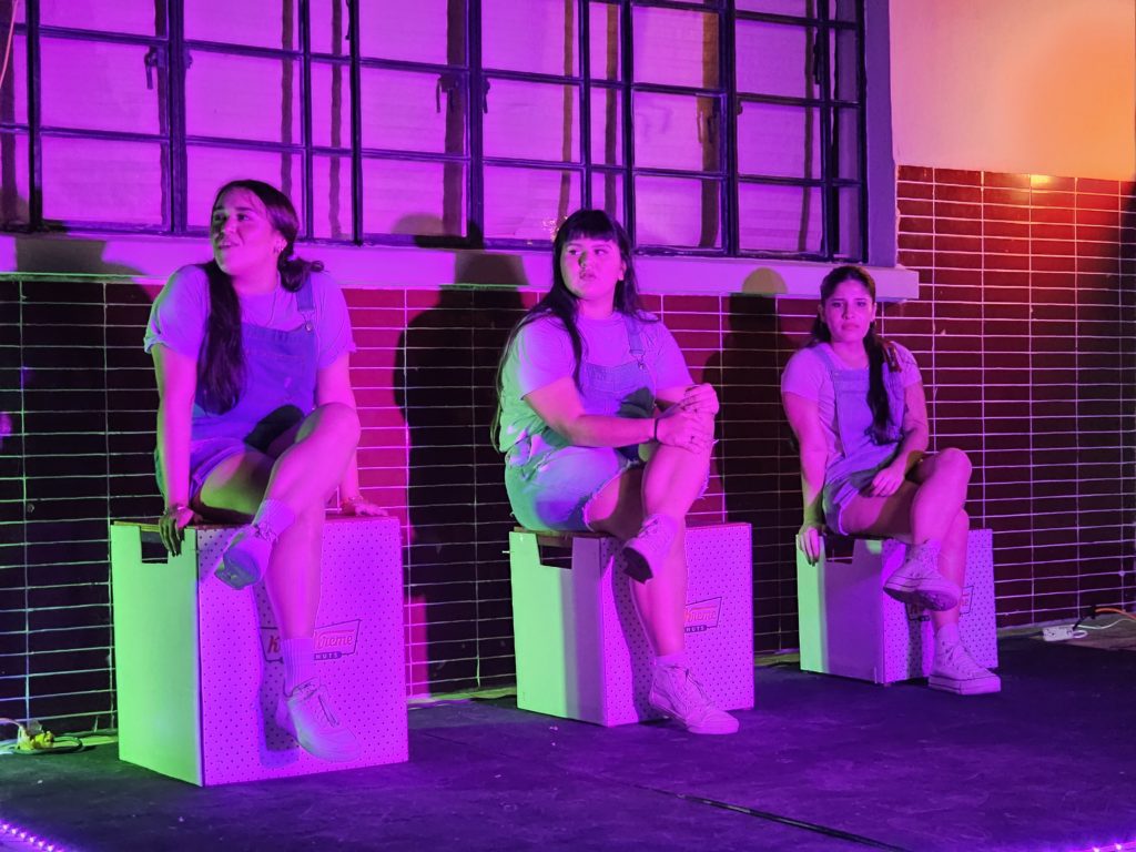 Ataviadas en overoles de mezclilla, con un look muy casual y juvenil, las actrices Ana Fernanda Urrea, Melanie Raygoza y Michelle Moreno presentaron la primera función de la obra Krispy Kream en la terraza de La Roosevelt.
