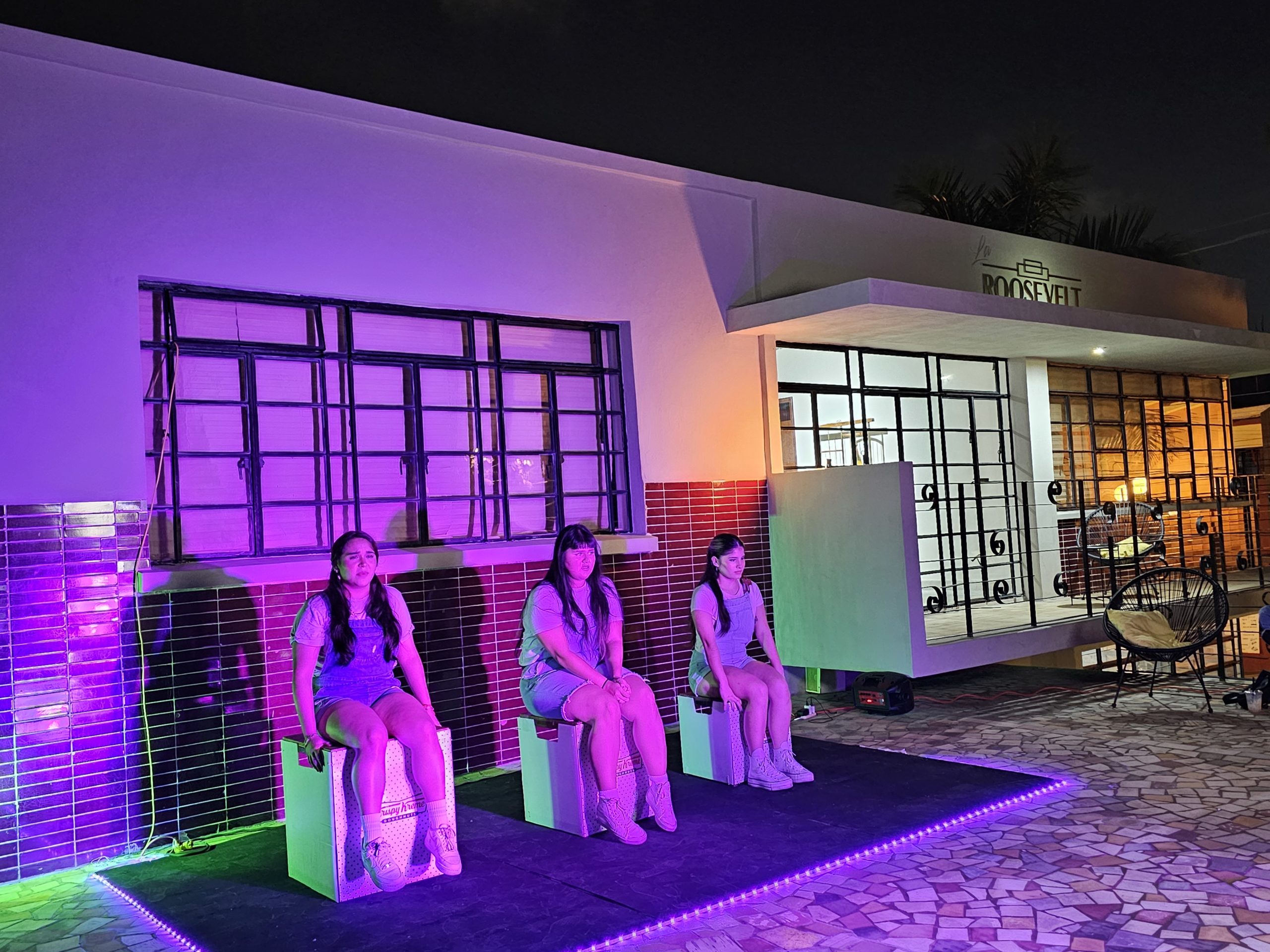 Ataviadas en overoles de mezclilla, con un look muy casual y juvenil, las actrices Ana Fernanda Urrea, Melanie Raygoza y Michelle Moreno presentaron la primera función de la obra Krispy Kream en la terraza de La Roosevelt.