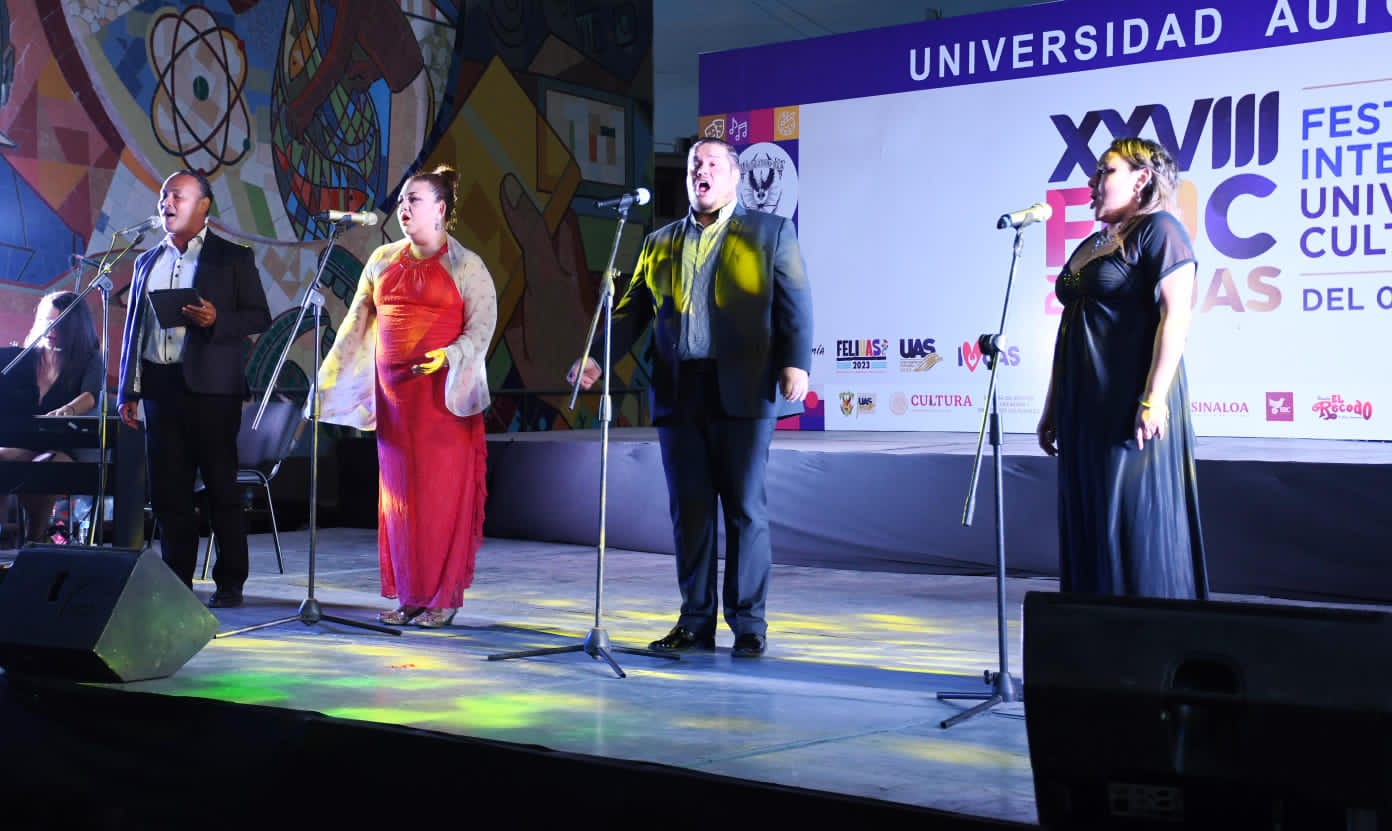La noche del domingo se vistió de gala para continuar con las actividades concernientes al XXVIII Festival Internacional Universitario de la Cultura (FIUC) 2023, de la Universidad Autónoma de Sinaloa, ésto con el recital de «ópera y zarzuela» denominado «Encuentro de voces».