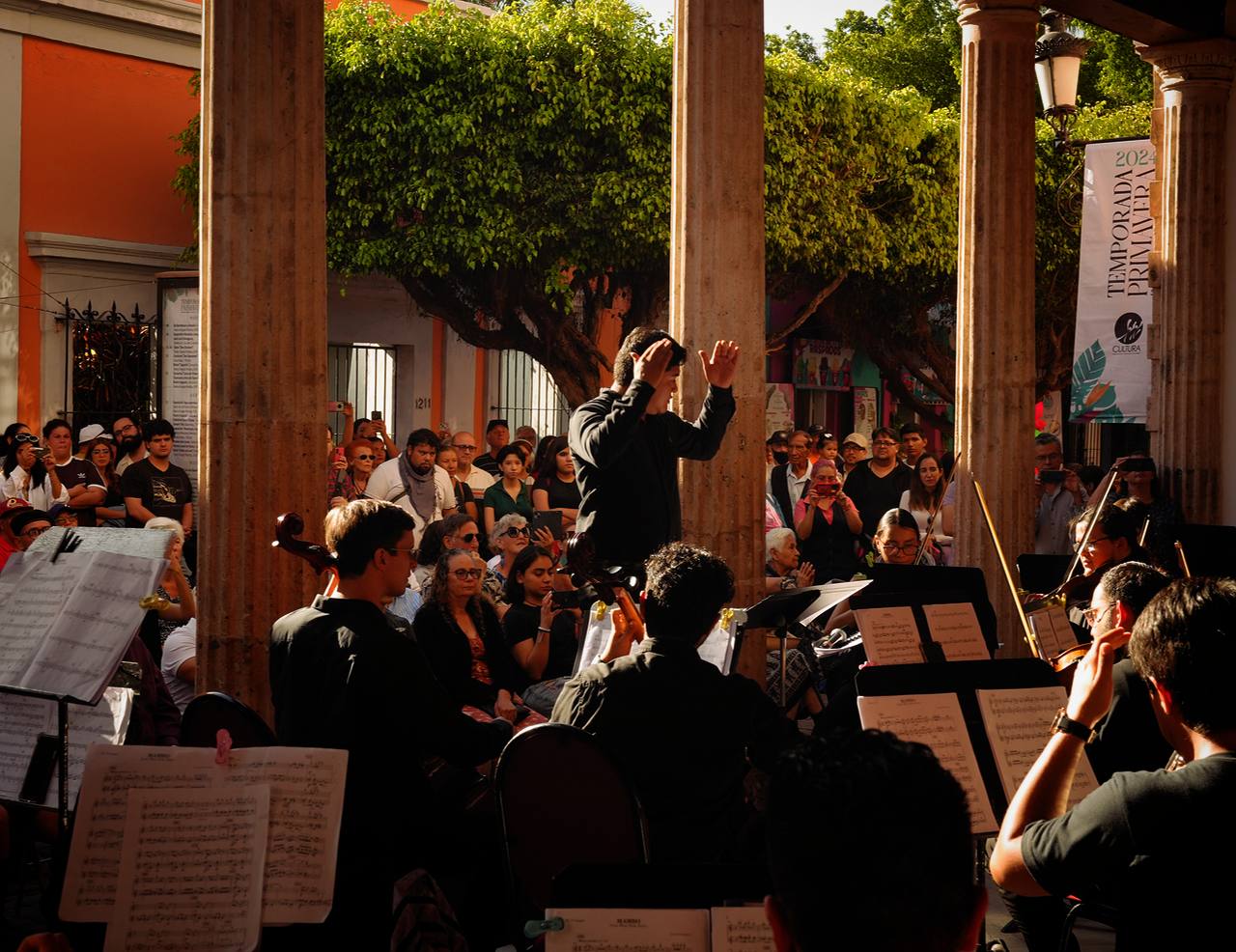La Orquesta Juvenil del CMA reapareció después de su exitosa presentación en diciembre del año pasado en la Plazuela Machado, y dio la bienvenida a la Temporada Primavera con una presentación en el pórtico del Teatro Ángela Peralta donde se disfrutó ¡El ritmo más rico, el rico mambo!