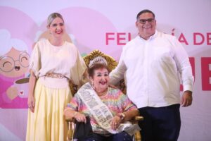 La presencia de la Presidenta Palacios Domínguez fue una sorpresa de mucho agrado para las y los festejados, porque se encargó de coronar a la “Reina de Reinas”, la abuelita Rosita Canizalez, del Grupo 60, quien corrió con la suerte de ser electa por una flor de entre 32 abuelitas, ya reinas.