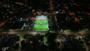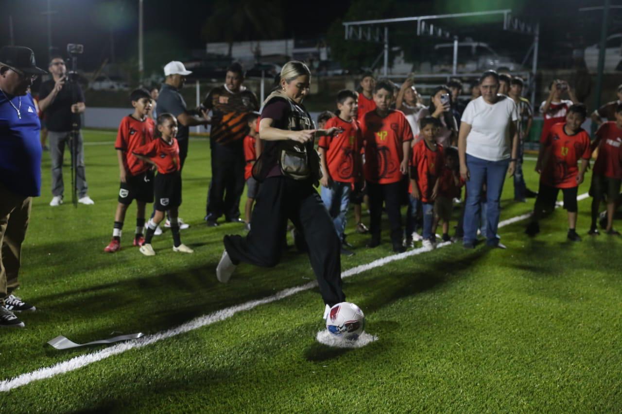 Entrega Gobierno de Mazatlán la rehabilitación del espacio deportivo que incluyó el reempaastado de la cancha de futbol, nueva reja perimetral, contenciones en porterías, además del mantenimiento de las gradas, juegos infantiles, ring de boxeo, rehabilitación de baños y pintura en general del espacio deportivo
