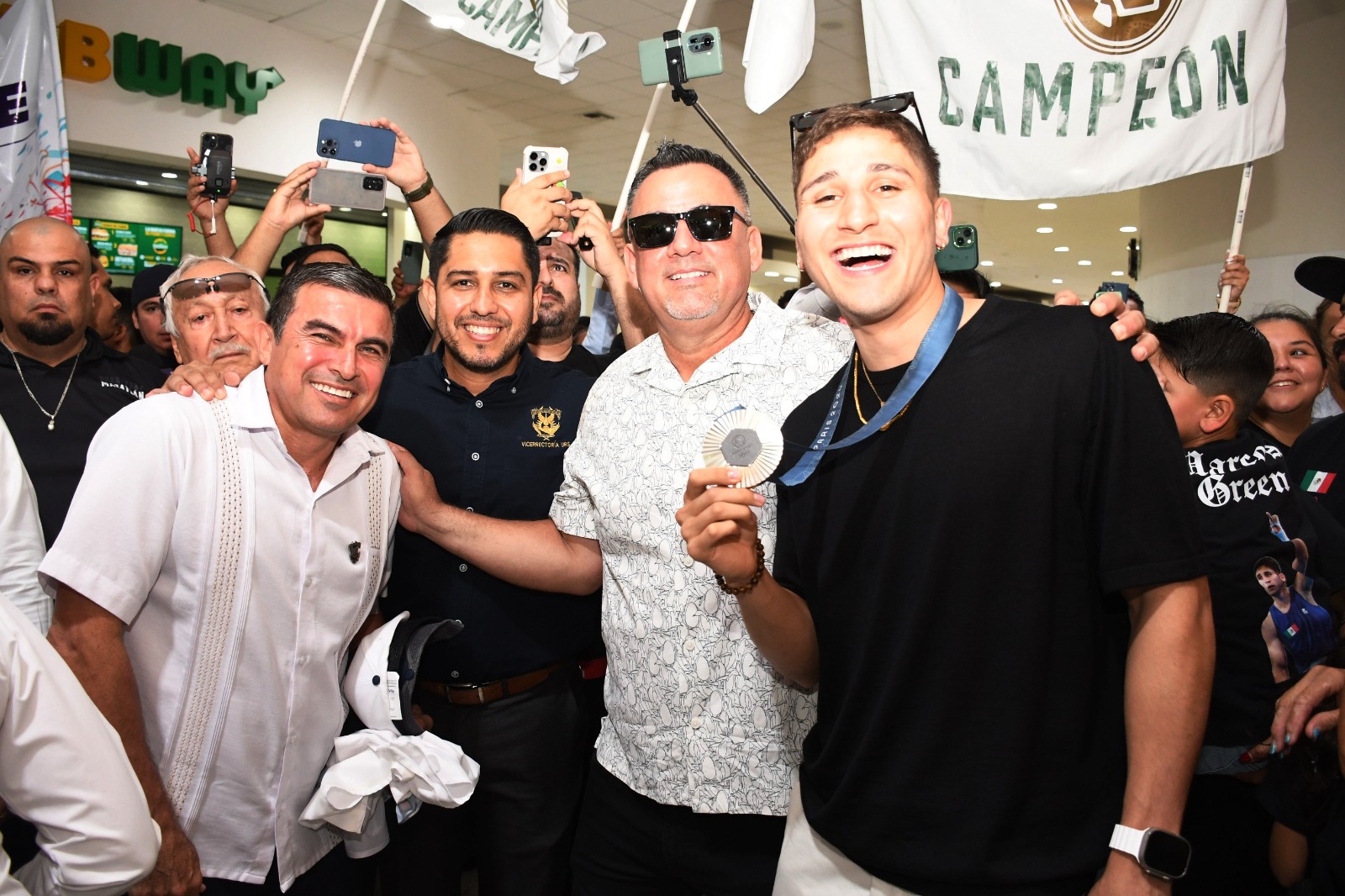 Se vivió un ambiente de euforia ante el arribo del boxeador, con música de banda y cientos de personas que se congregaron para presenciar la llegada del pugilista mazatleco.