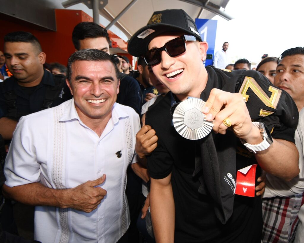 Mazatlán, Sinaloa.- Con gran emoción, autoridades de la Universidad Autónoma de Sinaloa (UAS), recibieron en el aeropuerto de Mazatlán, al medallista olímpico, Marco Alonso Verde Álvarez, Águila UAS.