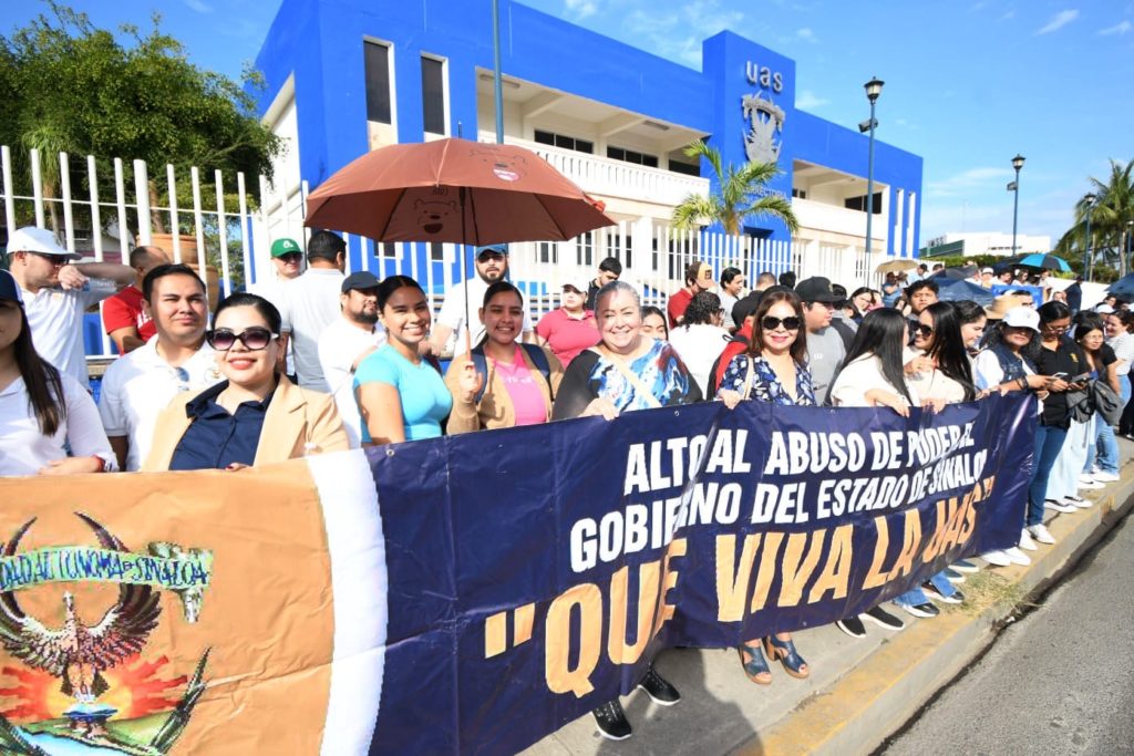 Acompañando la manifestación pacífica, estuvo el Dr. Manuel Iván Tostado Ramírez, vicerrector en la zona; quién agradeció la unión y el apoyo recibido tanto de personal docente, administrativo y de confianza; así como de estudiantes y padres de familia por la exigencia de un alto a los embates recibidos por el Gobierno Sinaloense.
