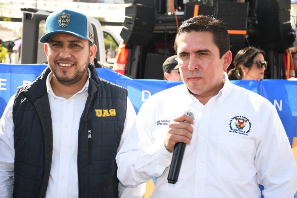 Junto a José Carlos Aceves Tamayo dirigente sindical del SUNTUAS Sección académicos, Tostado Ramírez, destacó que en cada uno de los espacios escolares desarrollados la UAS ha estado y seguirá cumpliendo con un compromiso social con la formación de futuras sociedades, contribuyendo en todos los aspectos.