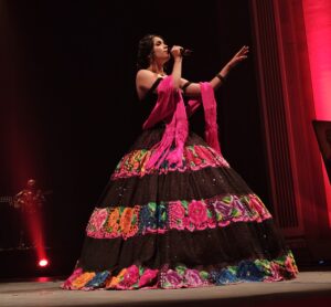 Silvia Zepeda inició el concierto con su voz juvenil y potente hizo suyos los temas de la reina de Rosario. “Paloma Negra”, “Sufriendo a solas” “Vámonos “, “No volveré” y “Se me olvidó otra vez” coreadas por el público.