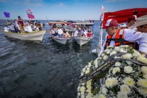 Con motivo del Día de la Marina, el candidato encabezó el homenaje a los marinos y pescadores caídos a bordo de alrededor de 25 catamaranes y pangas, acompañado por vecinos de Altata y otros campos pesqueros como Las Aguamitas, Dautillos, Las Puentes y El Castillo.
