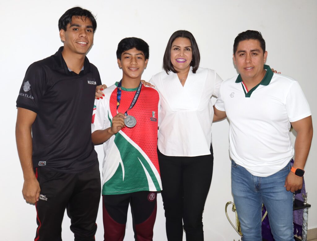 Para agradecer el apoyo que ha recibido del Instituto Municipal del Deporte Mazatlán, Nery Frías realizó una visita de cortesía a Fabiola Judith Verde Rosas, directora del Imdem, con la compañía de su entrenador, Lionzo Rodríguez Espinoza, así como de Juan Manuel Ortega Teutle, presidente del Comité Municipal de Taekwondo.