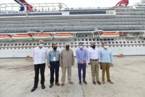 La bienvenida ofrecieron a la embarcación y a los turistas, el alcalde Luis Guillermo Benítez Torres, el Secretario de Turismo Óscar Pérez Barros junto a otras autoridades municipales.