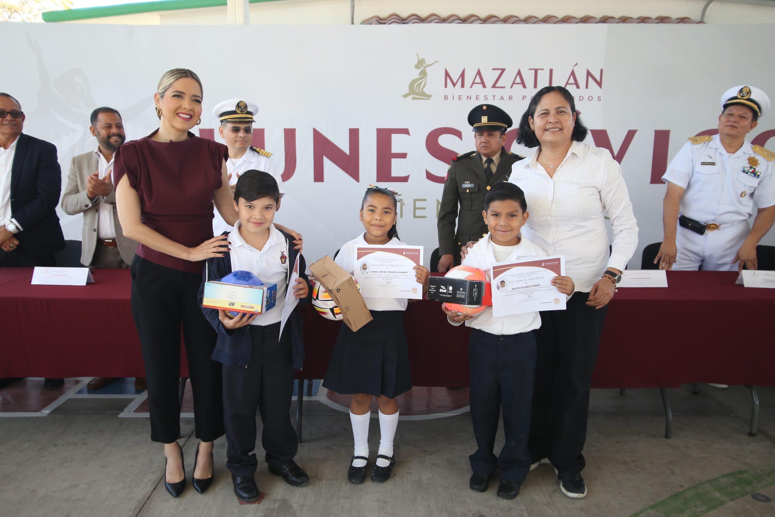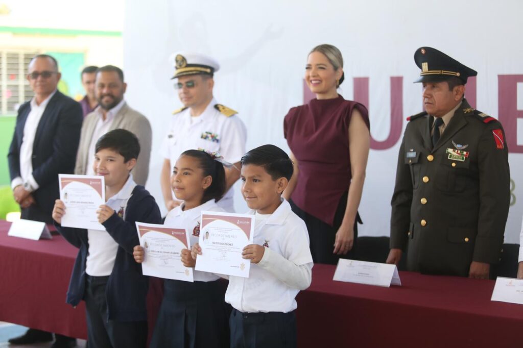 Mazatlán, Sinaloa.- El Municipio de Mazatlán y el Gobierno del Estado tienen claro que la educación es la base para transformar vidas y abrir puertas a futuro, enfatizó la Presidenta Municipal, Estrella Palacios Domínguez, en el mensaje que brindó en el Lunes Cívico en la Escuela Primaria General Felipe Ángeles, ubicada en la colonia Benito Juárez.