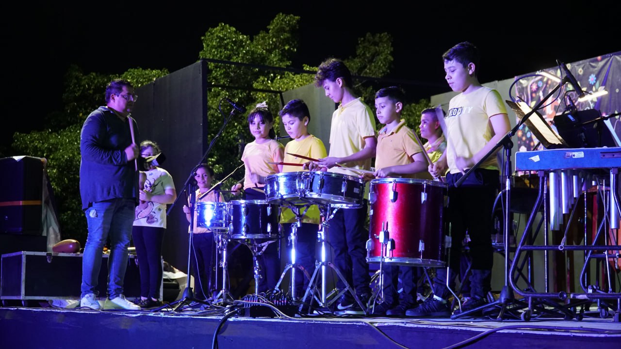 Fue en la cancha situada en la avenida Orión, donde niños, niñas y adolescentes que cursan el Taller de Percusión, adolescentes que están en el Nivel Técnico de Percusiones, y alumnos de la Licenciatura de la Escuela Superior de Música del CMA, brindaron un excelente concierto ante decenas de asistentes de todas las edades, quienes a pesar de la ligera lluvia apreciaron su actuación y brindaron fuertes ovaciones.