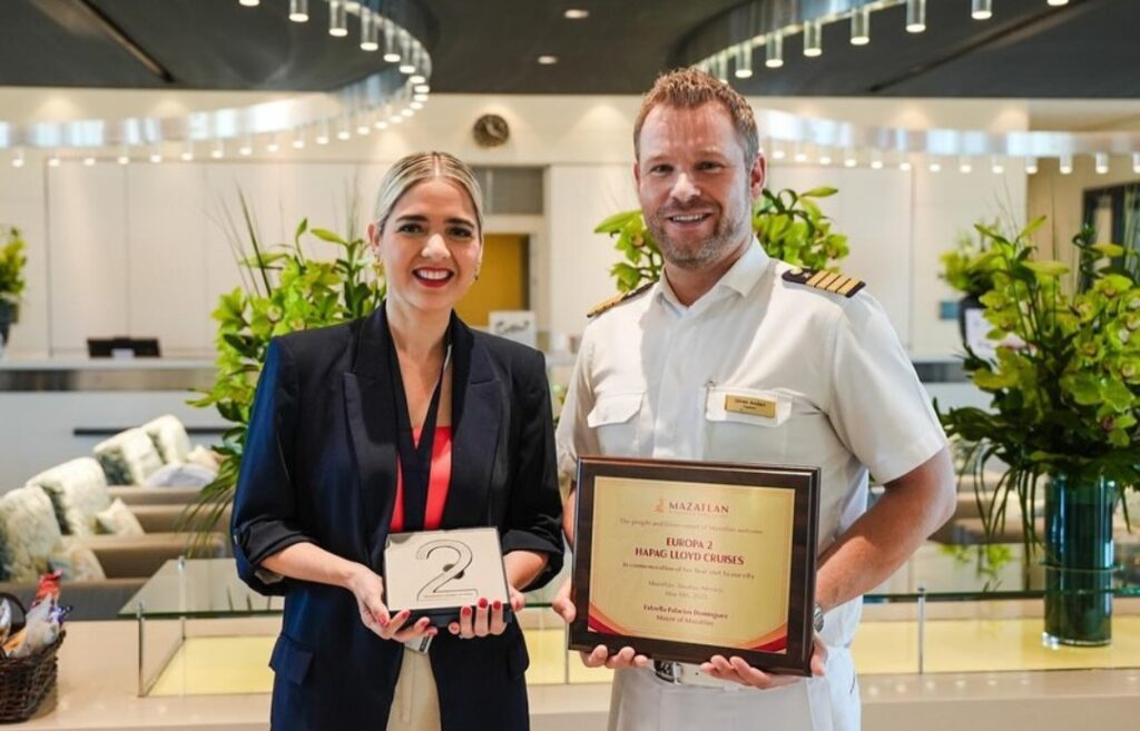 «Estamos aquí porque por primera vez llega un crucero que es denominado MS Europa 2; es la primera vez que llega (a Mazatlán), es un crucero considerado de lujo donde vienen alrededor de 500 pasajeros, venimos el día de hoy a recibirlos, a darles la bienvenida y a agradecerles que hayan escogido a Mazatlán como uno de los puertos de Pacífico para también incluirlo en su itinerario. Estamos muy contentos con la llegada de este crucero, sabemos que el segmento de cruceros es muy importante para Mazatlán, ya que dejan una buena derrama económica siempre todo el año con los cruceros que llegan a Mazatlán, que se ha ido incrementando año con año y se ha ido consolidando como un segmento de turismo que representa mucha importancia para los mazatlecos», dijo.