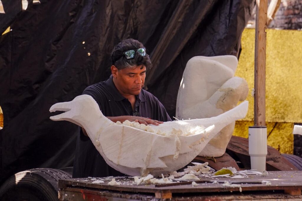 Con un equipo de casi 20 artesanos y artistas, la elaboración avanza en tiempo y forma, utilizando una mezcla magistral de materiales tradicionales y técnicas europeas.