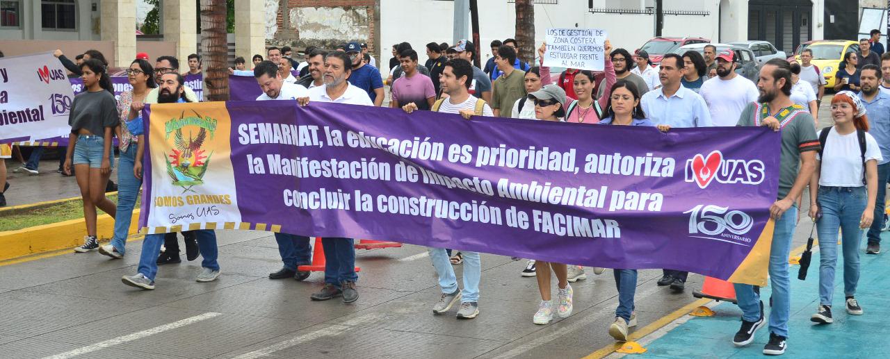 La Facultad de Ciencias del Mar (FACIMAR) de la Universidad Autónoma de Sinaloa (UAS) a través de su planta docente y estudiantes realizaron una manifestación pacífica para que las autoridades federales emitan el documento de impacto ambiental, ya que se ha cumplido en tiempo y forma con los requerimientos solicitados por parte de SEMARNAT, mismo que se requiere para continuar la construcción y ejercer los recursos que ya están aprobados.