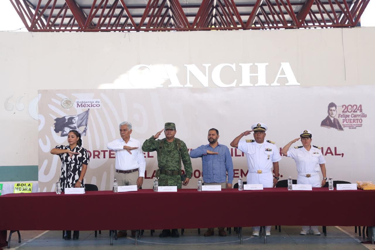 El Secretario del Ayuntamiento, Moisés Ríos Pérez, encabeza el acto de inauguración en la cancha Germán Evers