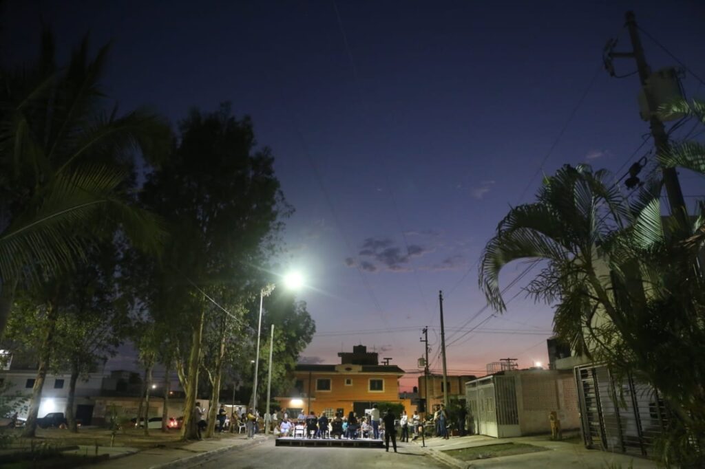 Tras caer la noche de este miércoles, la Presidenta Municipal, Estrella Palacios Domínguez, acompañada del ‘Equipo del Bienestar’ y colonos del lugar, llevó a cabo el encendido simultáneo de las lámparas en la calle Victoriano Mereles, a un costado del parque infantil del lugar.