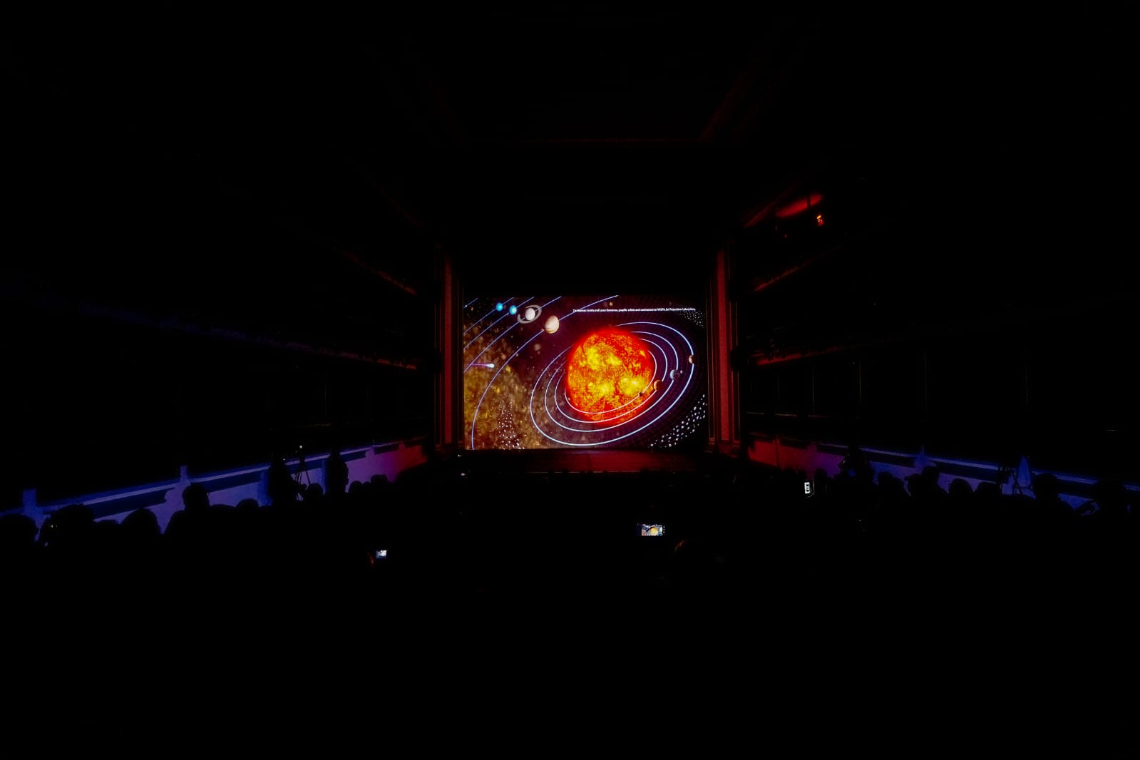 Después de los discursos corrió el telón del teatro para la proyección de “En la sombra del eclipse” que narra la pasión de los científicos por este gran evento.