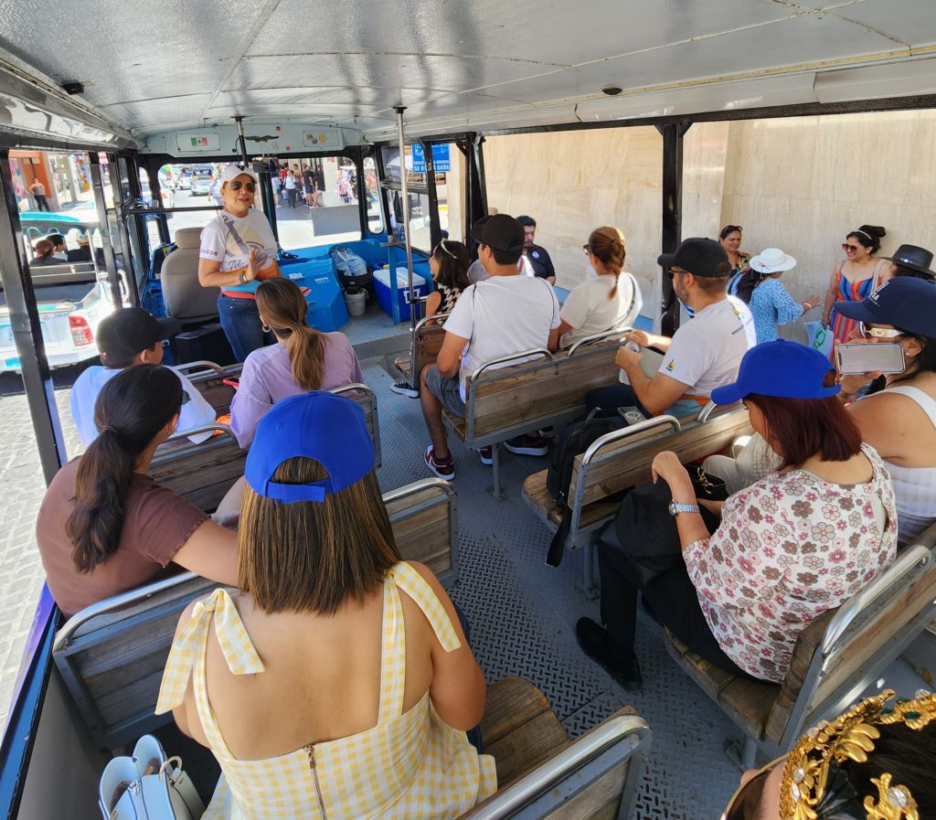 Durante el recorrido en el camioncito azul, que por más de una década ha transportado a chicos y grandes, se reprodujo una audio guía que contó la historia y datos relevantes del puerto, como que tiene una de las flotas camaroneras más grandes del Pacífico con más de 450 embarcaciones, el Monumento a la familia hecho por el reconocido pintor Antonio López Saénz o la construcción del Paseo del Centenario en 1910.