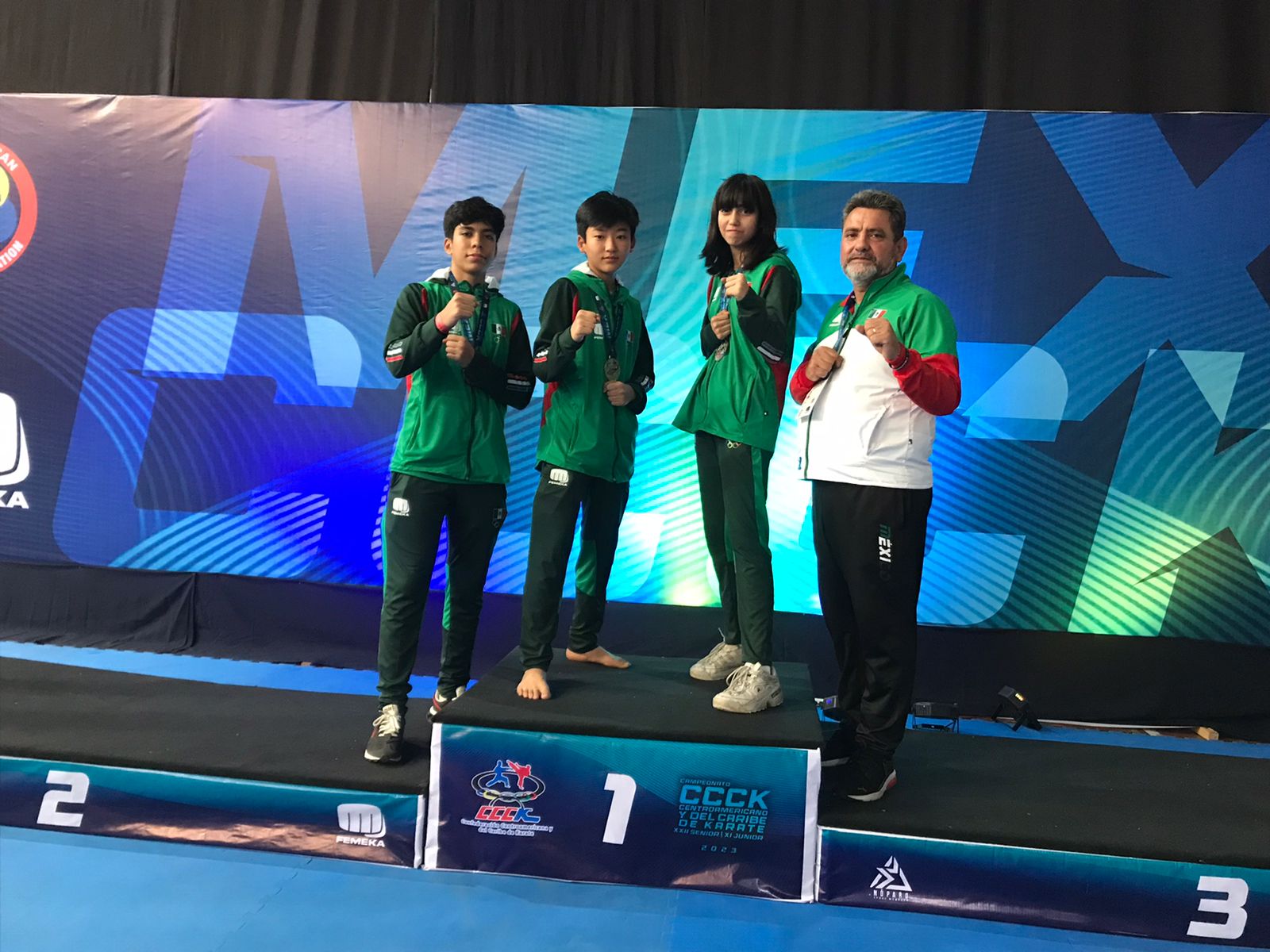 Oaxtepec, Morelos.- Sophia Yaheli Serrano, Ángel Eduardo Ponce y Kaito Daniel Yoshii, subieron al podio del XI Campeonato Centroamericano y del Caribe Juvenil de Karate Do.