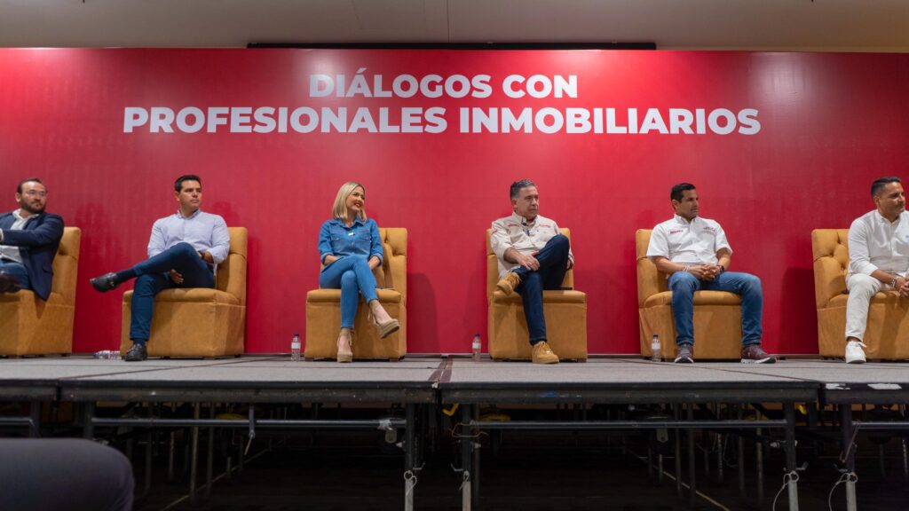 La candidata de Morena a la Presidencia de Mazatlán participó esta tarde en Diálogos con Profesionales Inmobiliarios en el Centro de Convenciones al que asistieron también los morenistas Carlos Escobar, candidato a diputado local por el distrito 21 y Enrique Inzunza, candidato al Senado.