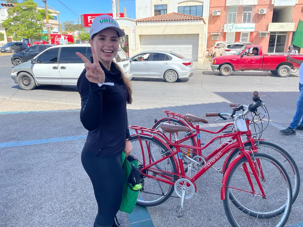 Melissa Urías recorre en bicicleta calles del distrito 22