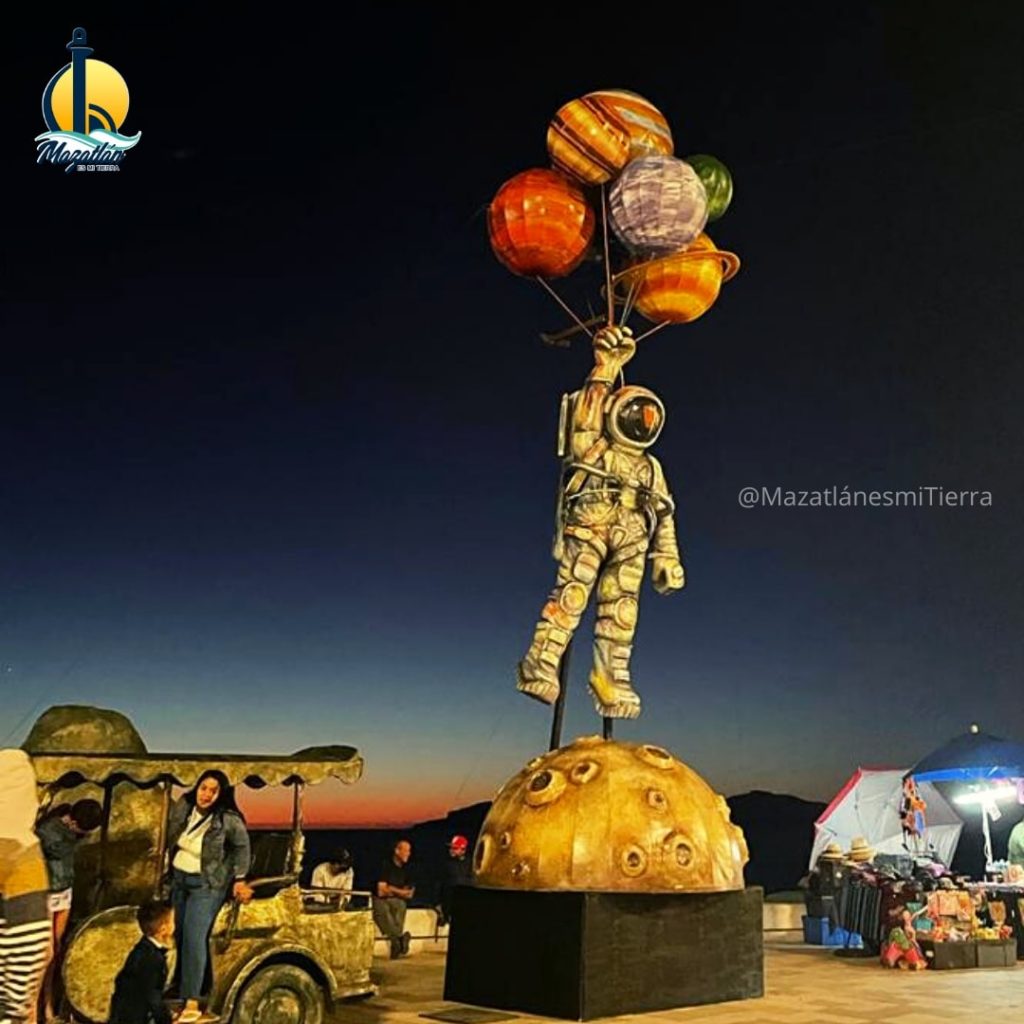 Fue de las primeras figuras en montarse, mide ocho metros y la figura del astronauta y los globos muestran un viaje al espacio para mirar desde arriba la grandeza del mundo. Esta pieza representa el cambio del hombre que en sus viajes y experimentos de conocimiento explora la vida. Encuéntralo a un costado del Monumento a la Pulmonía.