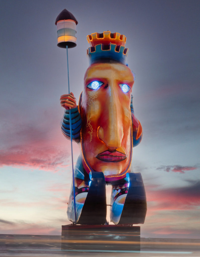 Frente al Parque Ciudades Hermanas está figura, que fue de las últimas en instalarse y representa lo que es el Carnaval, una celebración que va más allá de una fiesta: es arte, cultura, amor, pasión y deseos, deseos de representar a toda una sociedad, deseos de obtener un galardón, el anhelo de crecer, de mostrarse, en esta pieza se refleja la ilusión y el anhelo de cumplir cada sueño, de alcanzar lo inalcanzable en este viaje de liberación y de descubrimiento.