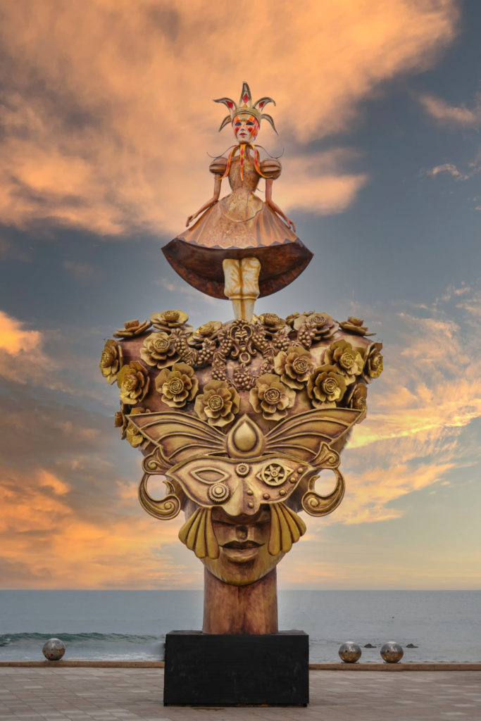 Esta pieza también fue de las primeras en ser colocadas, esta ubicada a un costado de las letras de Mazatlán junto a Valentinos, es un antifaz, la identidad de está fiesta que por años se ha vuelto la compañía perfecta del Carnaval Internacional de Mazatlán. Además engloba, además, la escultura, pintura, el arte en todo su esplendor que ha viajado con el tiempo acompañando nuestra celebración.