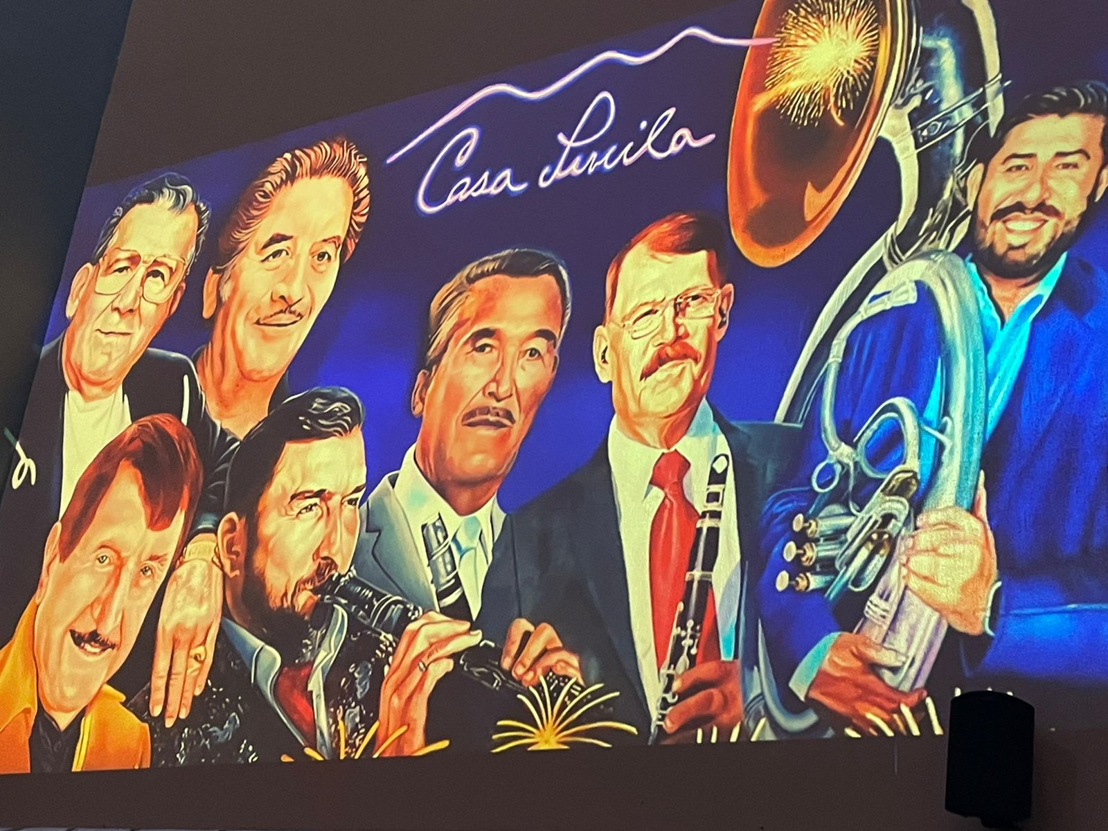 El muralista compartió con los asistentes la emoción de realizar este proyecto que surgió hace algunos años, ya que desde pequeño estuvo involucrado con los pioneros de la música sinaloense por su padre, quien era músico.