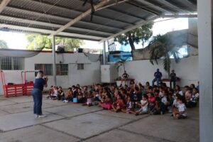 Durante la participación de “Tita”, la gotita de JUMAPAM, personal de Cultura del Agua brindó una charla interactiva sobre el ciclo urbano del agua y el cuidado de los servicios hídricos, destacando los consejos para hacer un buen uso del vital líquido.