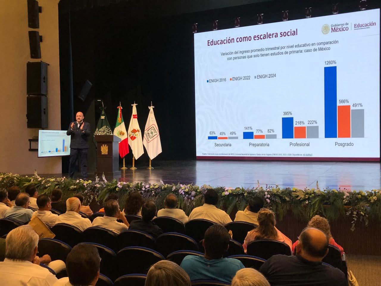 El funcionario federal abordó el tema “Reformas a los Sistemas Universitarios de Pensiones: diagnósticos y lineamientos para la sostenibilidad financiera”; hizo una analogía donde la Autonomía la comparó con el padre que tiene dos hijos con libertad de tomar decisiones y que reciben un financiamiento, donde uno fue responsable en muchos años de ese apoyo que recibía y el otro no, por lo que el padre no puede quitarle dinero al primero para dárselo al otro.