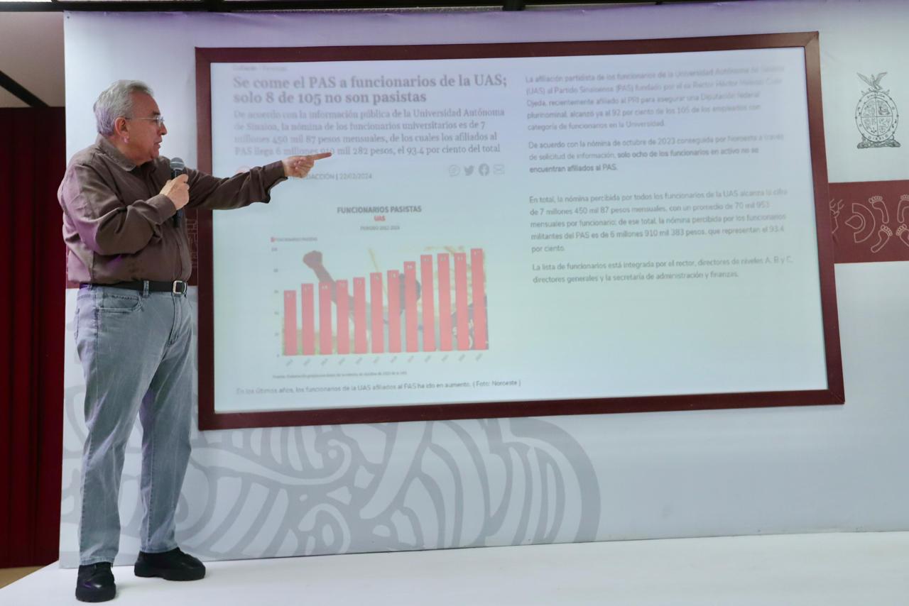 En este contexto, Rocha Moya pidió al actual encargado de la Rectoría de la Universidad Autónoma de Sinaloa, no confundir ni afectar a la comunidad estudiantil al firmar indebidamente los títulos universitarios, agregando que esto solo puede hacerlo un Rector Interino, porque de lo contrario se pone en riesgo a los egresados de la UAS.