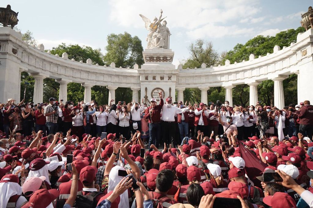 Acompañado por los próximos gobernadores Lorena Cuéllar, de Tlaxcala; Alfredo Ramírez Bedolla, de Michoacán; y Rubén Rocha Moya, de Sinaloa, el presidente nacional de Morena, Mario Delgado Carrillo, encabezó en el Hemiciclo a Juárez la “Fiesta de la Democracia”.