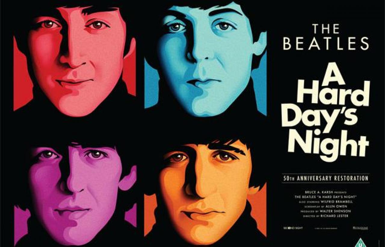 “A Hard Days Night” muestra a The Beatles causando furor por dondequiera, es una película divertida donde los integrantes se ven relajados mostrando el fenómeno de la Beatlemanía de manera satírica (la icónica escena inicial con la canción titular de la película y viendo a muchos fanáticos gritar y perseguir a los Beatles mientras intentan llegar a la estación de trenes) y ver como manejan la fama.