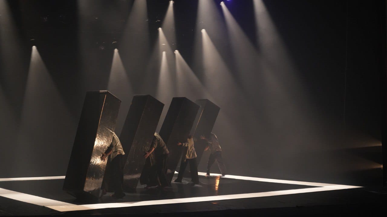 Con iluminación y escenografía de Francisco Córdova, “Perpetuum Tempus” fluye a partir de módulos con una especie de espejos negros que evocan objetos pasados como el espejo de obsidiana al que los Aztecas atribuían propiedades mágicas para realizar viajes al mundo de los antepasados.