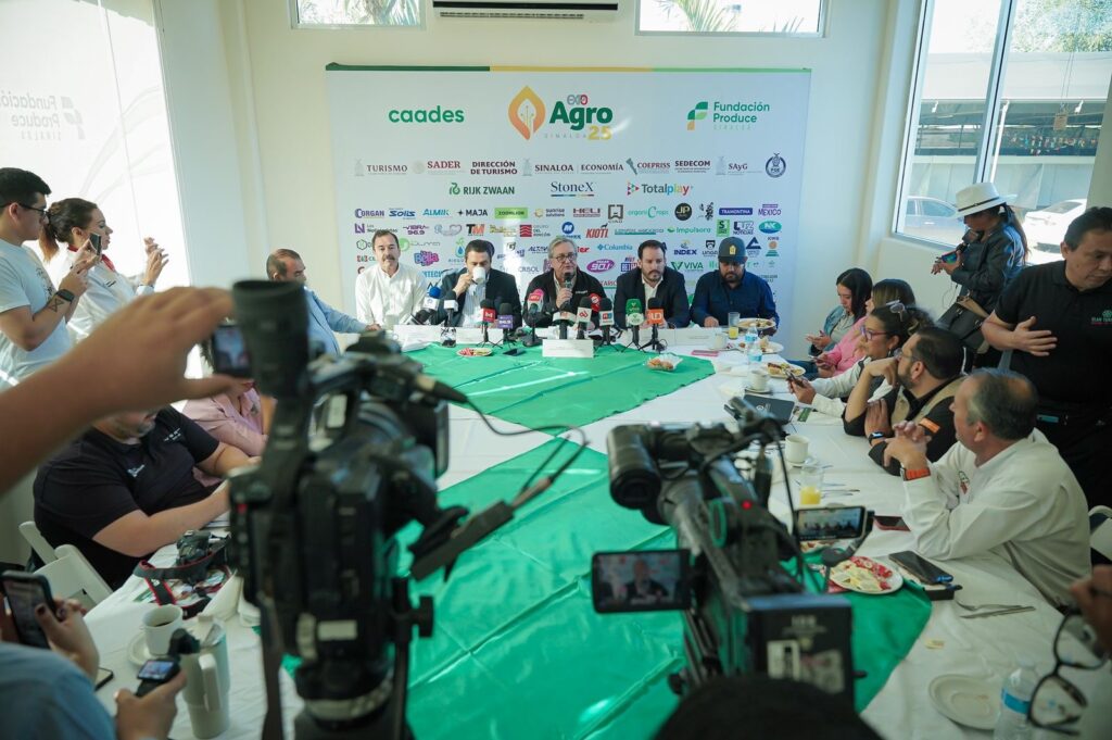 Durante la conferencia de prensa en Fundación Produce, junto con el Presidente de la Caades, Marte Vega Román, el Secretario de Economía del Estado, Ricardo Velarde Cárdenas; Adolfo Rojo Montoya, representante de la Secretaria de Turismo, Mireya Sosa Osuna y el síndico de Aguaruto, José Ramiro García, en donde se dieron a conocer los pormenores de la Expoagro Sinaloa 2025, se anunció también que será inaugurada el próximo día 12 de febrero por el Secretario de Agricultura y Desarrollo Rural, Julio Berdegué Sacristán y el Gobernador Rubén Rocha Moya.
