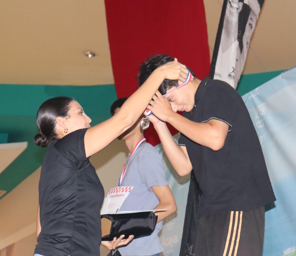 En representación del alcalde Édgar González, la directora del Imdem, Fabiola Verde, premia a los mejores exponentes, entre los 60 competidores que tuvo el certamen, tras dos meses de intensas partidas desarrolladas en Plaza Acaya