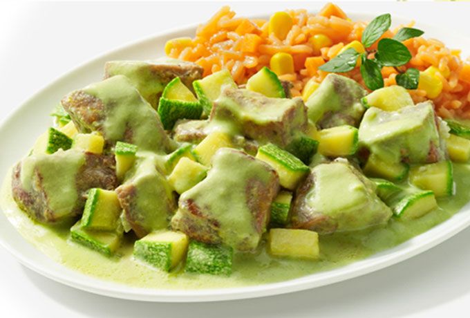 Esta ocasión te compartimos una receta rica en proteína y verduras, carne de res con calabaza y salsa poblana.
