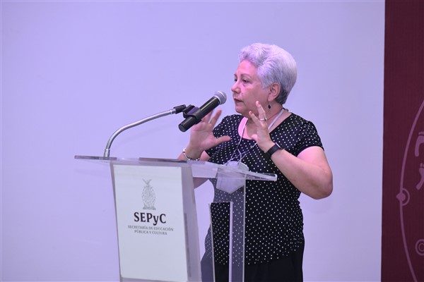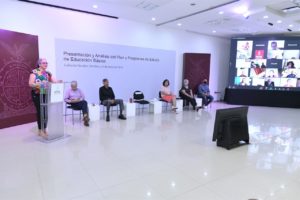 La titular de la Secretaria de Educación Pública y Cultura (SEPyC) destacó que esta política educativa mexicana es una visión de Estado, no una visión de Gobierno; una visión a largo plazo, no de coyuntura, y en la cual el gobernador Rubén Rocha Moya delineó desde lo local y que está plasmado en el Plan Estatal de Desarrollo 2022-2027.
