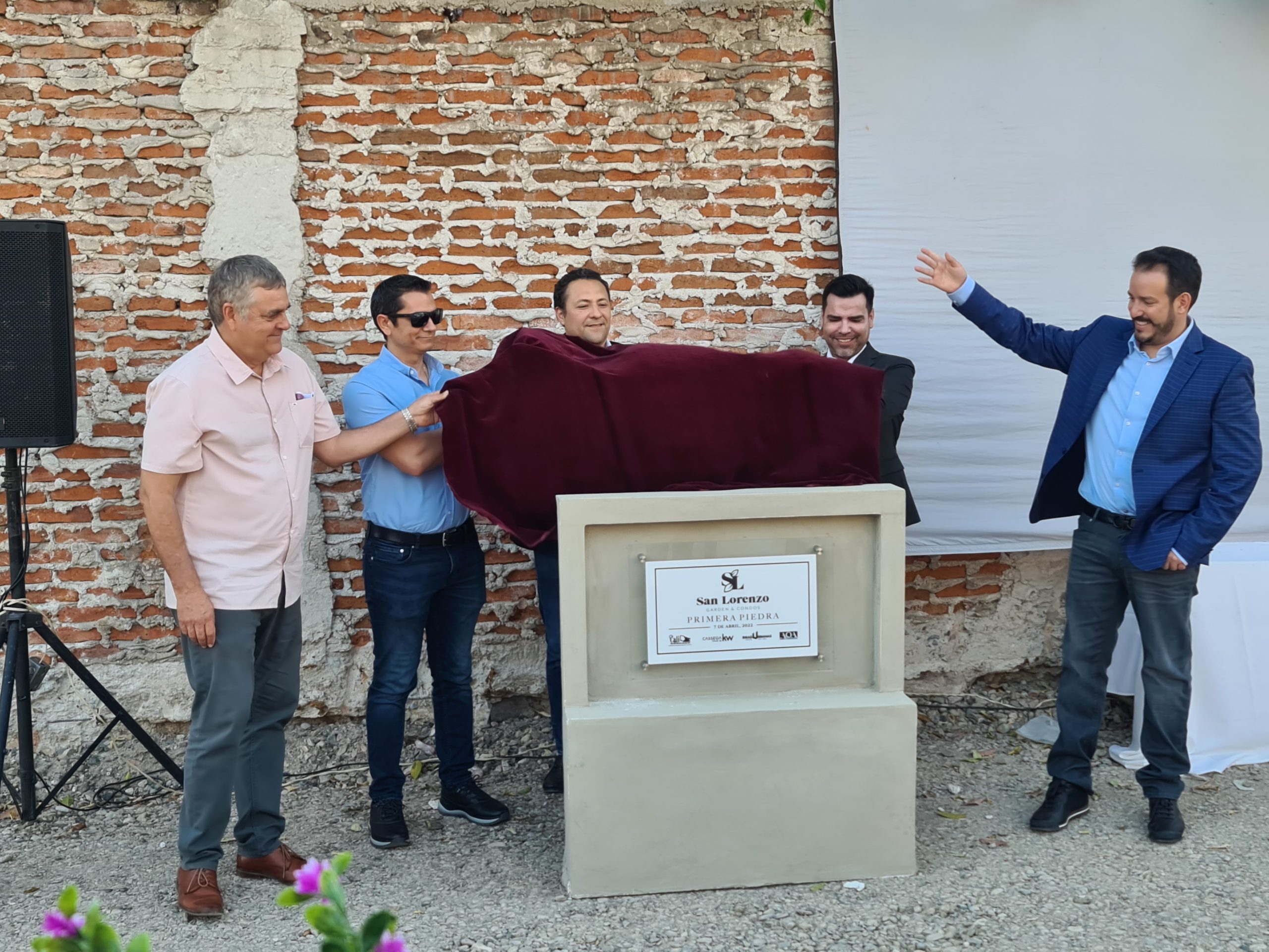 La primera piedra de los Condominios San Lorenzo fue develada esta tarde en la colonia Palos Prietos.