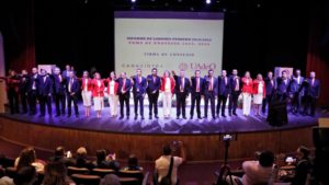 Al gobernador Rocha lo acompañó a esta ceremonia, que tuvo lugar en el Teatro Lince de la Universidad Autónoma de Occidente, el secretario de Economía, Javier Gaxiola Coppel; y como invitada especial la senadora de la República, Imelda Castro Castro.