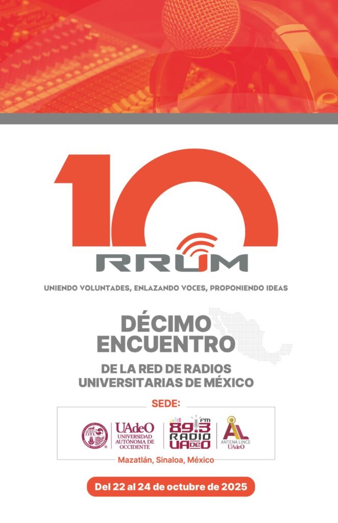 Este evento, que se desarrollará los días 22 y 23 de octubre en el puerto de Mazatlán, Sinaloa con la Universidad Autónoma de Occidente (UAdeO) como anfitriona, reunirá a directivos de radiodifusoras universitarias, expertos en comunicación, académicos y funcionarios públicos para compartir experiencias, capacitarse y fortalecer el trabajo en red a través de conferencias magistrales, mesas de análisis y paneles de discusión.